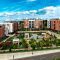 الشقق الموجودة في الطوابق العليا أيضًا على شرفات.